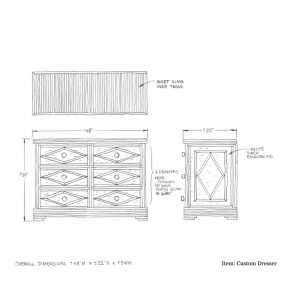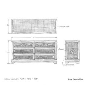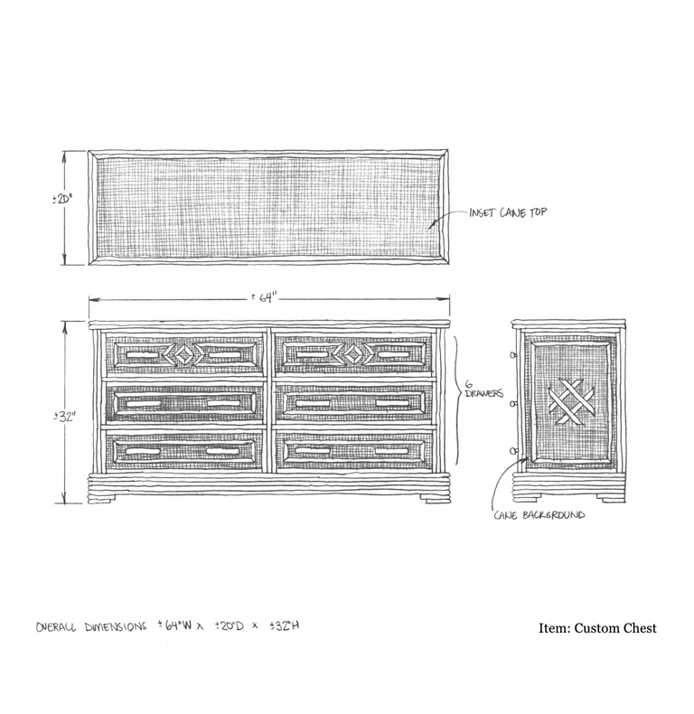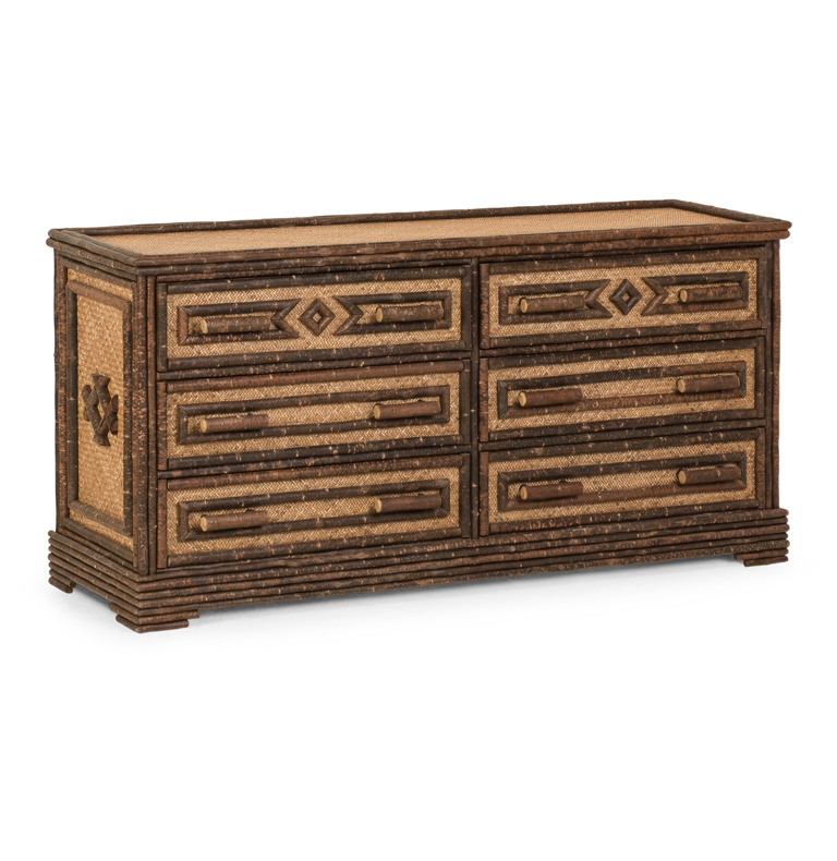 Custom Six Drawer Dresser w/ Cane Background & Willow Trim: