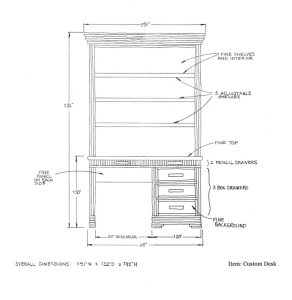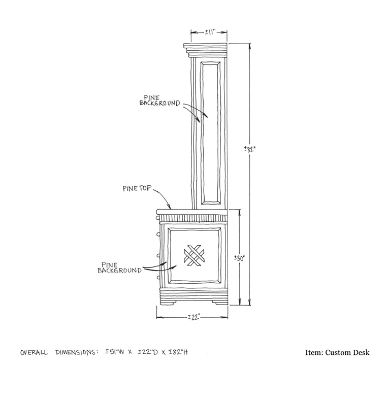 Custom Desk and Shelves with Pine Background & Willow Trim: