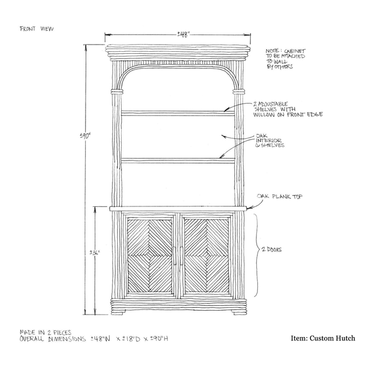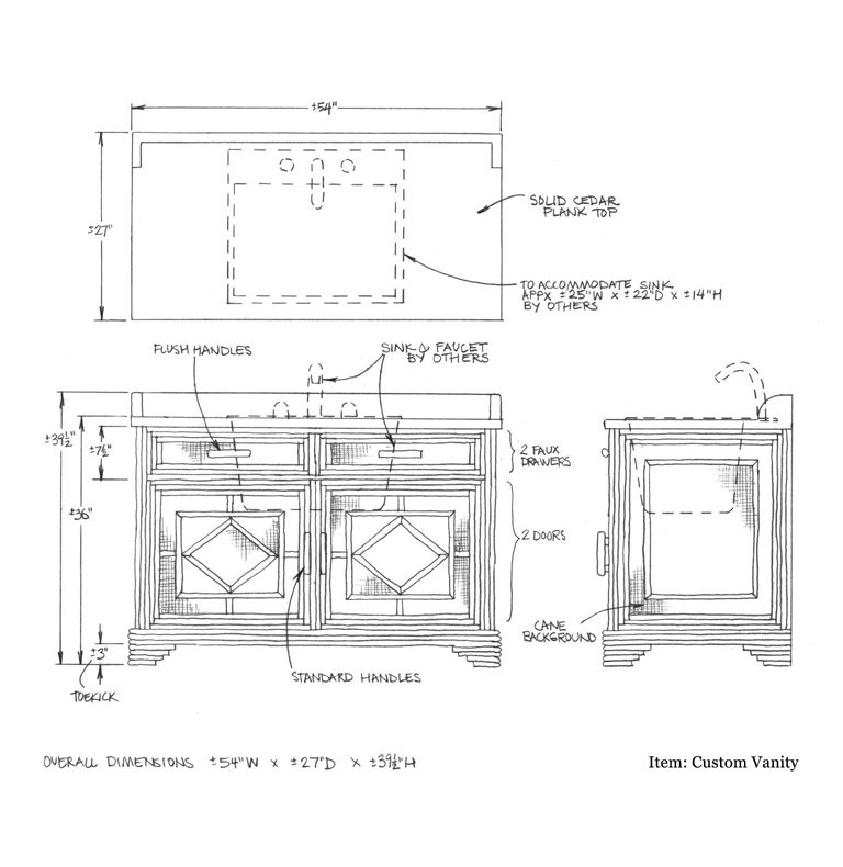 Custom Vanity with Cane Background & Willow Trim: