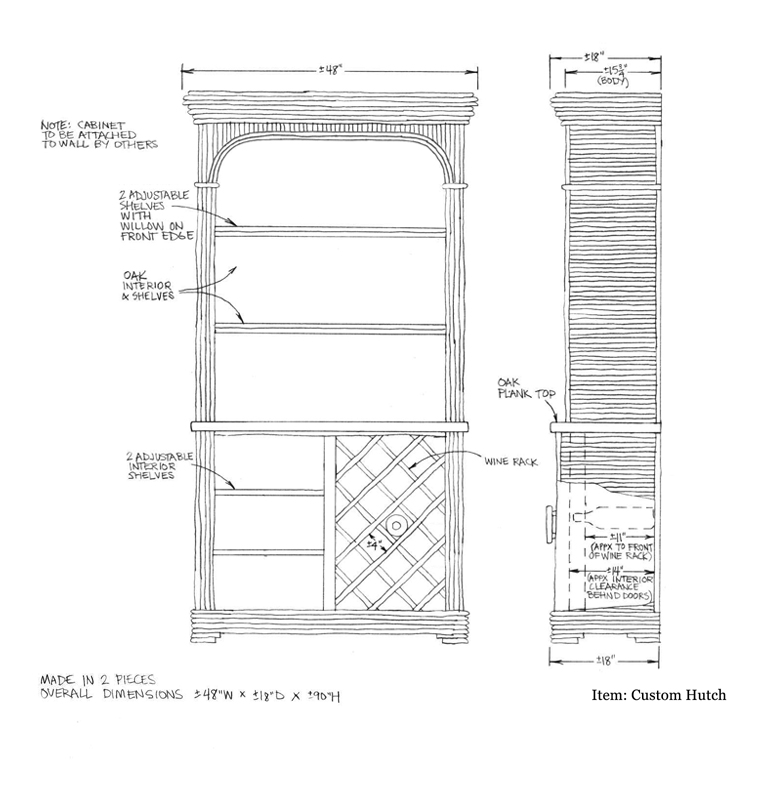Custom Hutch with Oak Interior & Wine Rack: