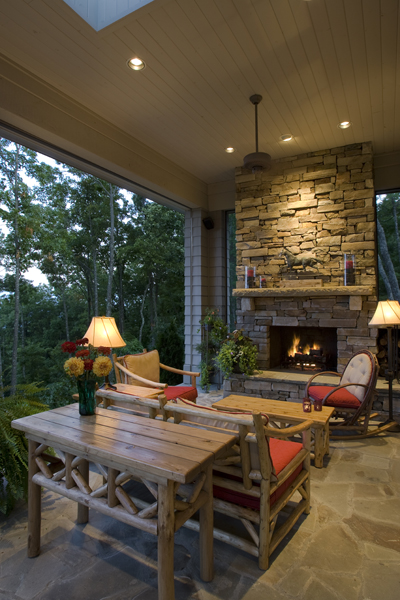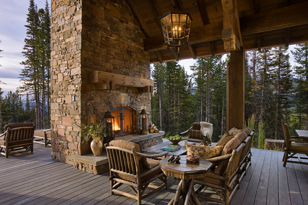 With its majestic view of the surrounding pine forests, who wouldn’t enjoy relaxing next to this fabulous terrace fireplace with its handsome La Lune chairs and tables courtesy of Locati Architects, Bozeman, MT? (Club Chairs #1174, Table #3408)