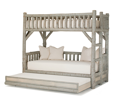 At La Lune Collection we are big fans of the bunk bed – and we know we’re not alone. In recent years bunk beds have demonstrated that they’re not just for kids’ rooms, dorm rooms, and summer camp anymore – as we, as a culture, downsize and recognize that smaller space can equal a better lifestyle, bunk beds are a proving themselves to be a stylish and functional answer to space saving concerns. Further, anyone who has slept in a bunk bed recently can attest to how much fun it is – a room full of bunks can be an entertaining place for the young, and the young at heart. Who wouldn’t want to tuck in for the night in the beautiful Bunk Bed #4255, which boasts a twin bed over a full-size bed?
