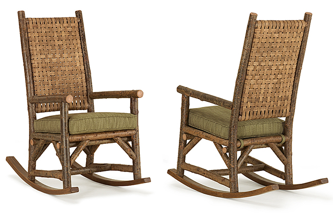 Handwoven flat reed back, loose tie-on seat cushion, frame of locally sourced poplar branches in Natural finish