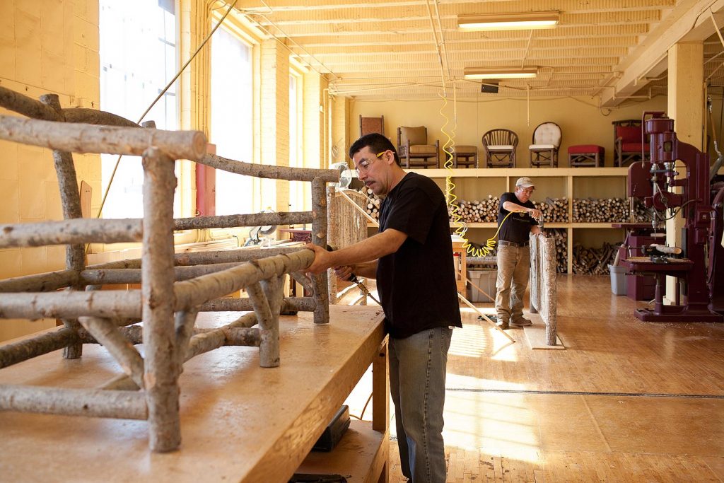 We are proud at La Lune Collection of our beautiful and unique furniture which we create at our equally beautiful and unique facility, a collection of charming cream city brick buildings built over 100 years ago that we have carefully and lovingly restored. Our buildings, machinery, and equipment, all dating back to the early 1900’s, have been thoroughly recycled and restored incorporating high efficient use of energy. We are pleased to sustain the ancient tradition of hand-made rustic furniture using the same methods and materials that were used by the early artisans. Our craftsmen travel the rivers and forests of Wisconsin, carefully selecting and harvesting the willow, poplar, birch, oak, and pine required to create each piece here in our small, pristine workshop.