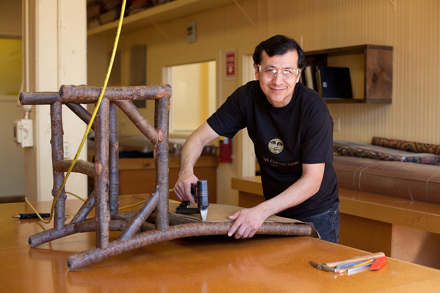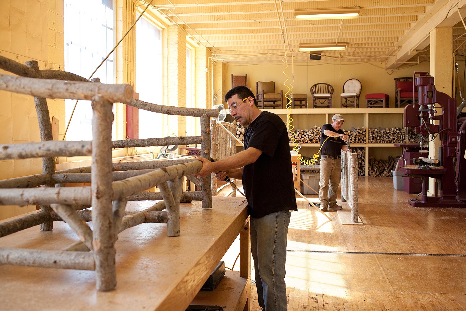 We are proud at La Lune Collection of our beautiful and unique furniture which we create at our equally beautiful and unique facility, a collection of charming cream city brick buildings built over 100 years ago that we have carefully and lovingly restored. Our buildings, machinery, and equipment, all dating back to the early 1900’s, have been thoroughly recycled and restored incorporating high efficient use of energy. We are pleased to sustain the ancient tradition of hand-made rustic furniture using the same methods and materials that were used by the early artisans. Our craftsmen travel the rivers and forests of Wisconsin, carefully selecting and harvesting the willow, poplar, birch, oak, and pine required to create each piece here in our small, pristine workshop.